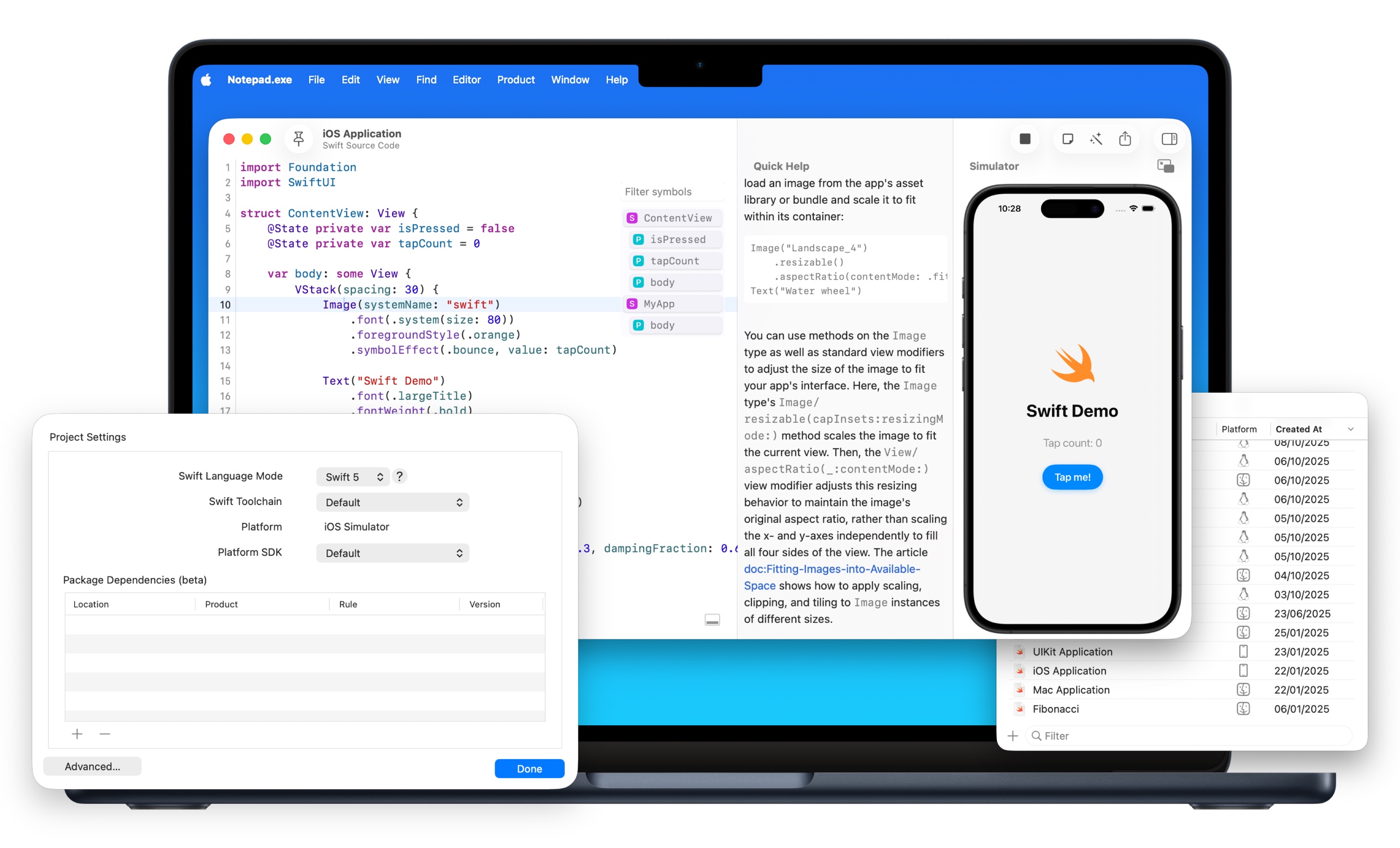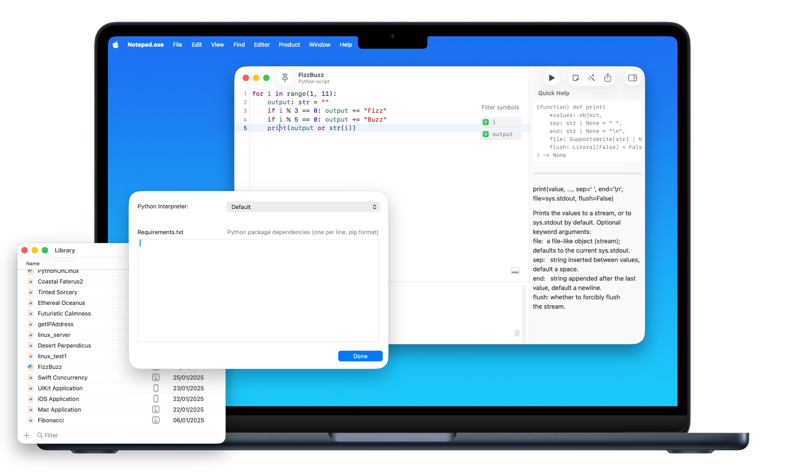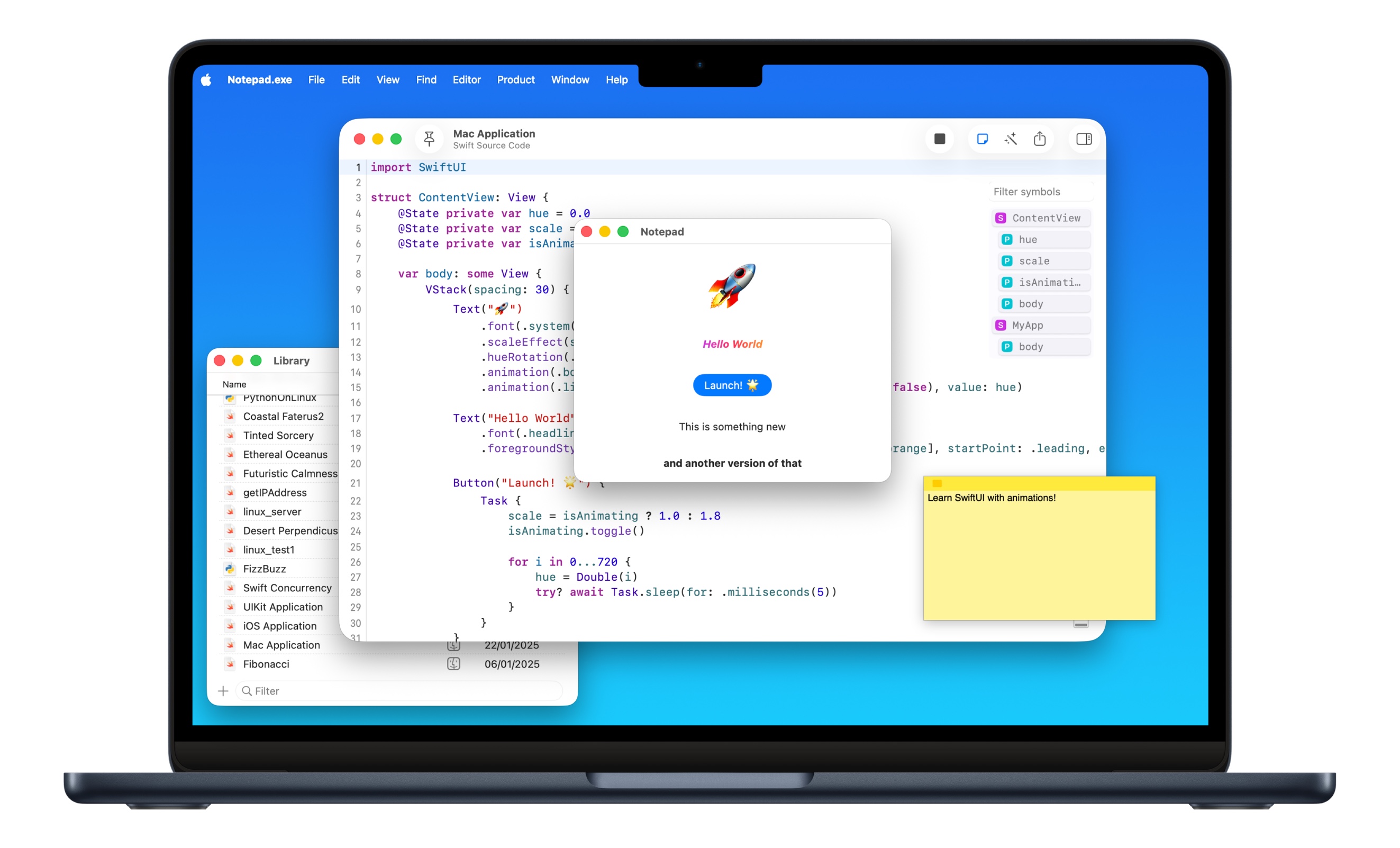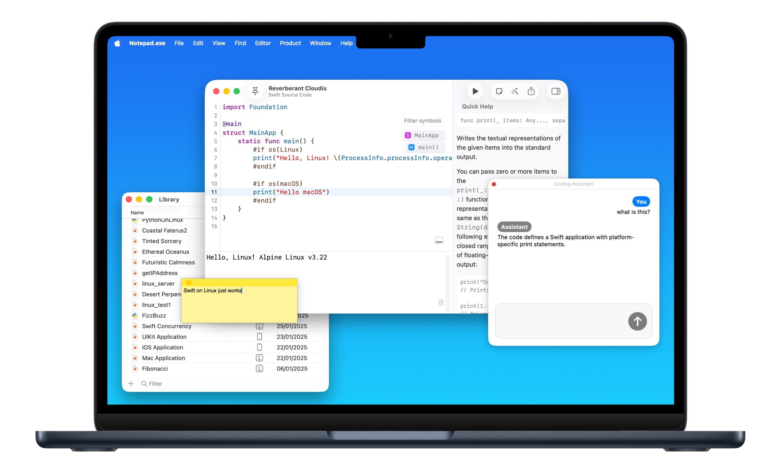 Notepad.exe is a native macOS code editor for Swift and Python that skips the setup. Write code and run it - that's it. Launched in May 2025, it features zero-configuration coding, iOS Simulator integration, AI assistance, Mac app export, and Linux cross-platform support.